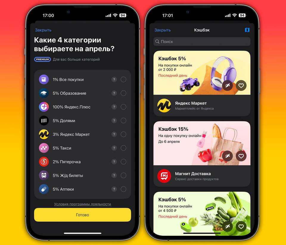Популярные категории для кэшбэка