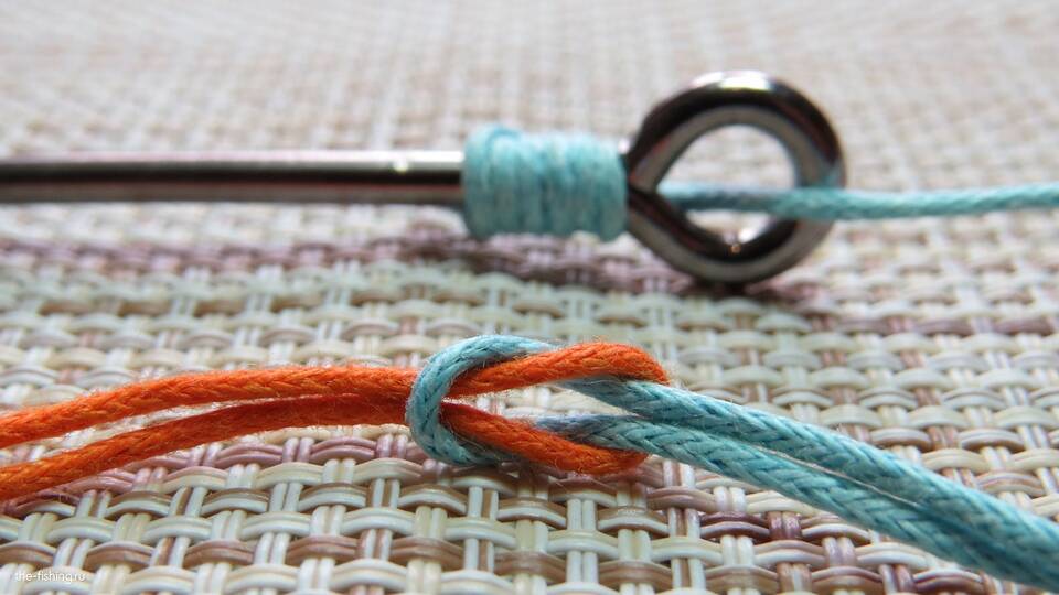 - Завяжите простой узел на двойной леске